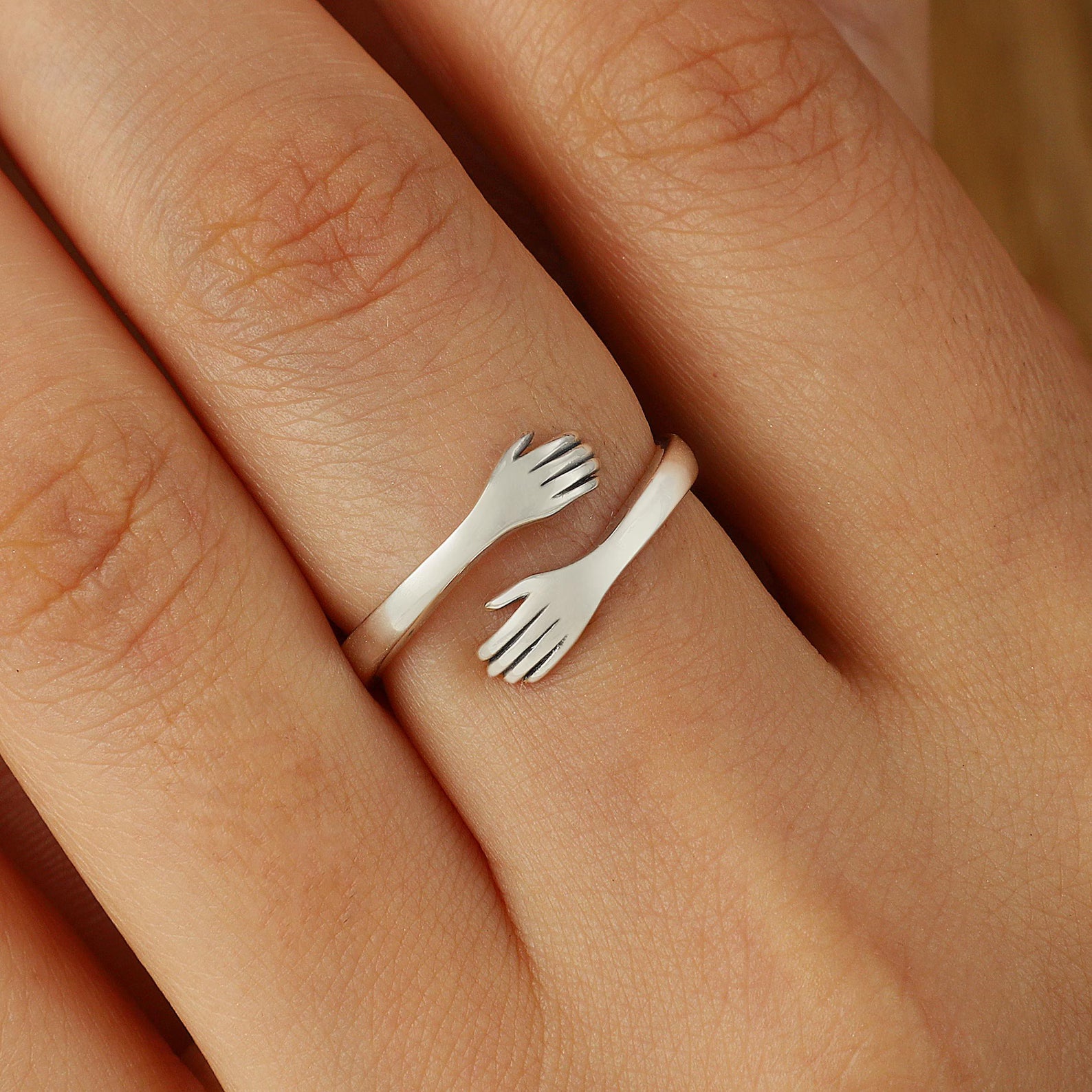 Ring Hug™ Handmade Sterling Silver S925 Customizable Gift Idea for Him Her Luxury Jewelry with Gift Box and Thank You Note